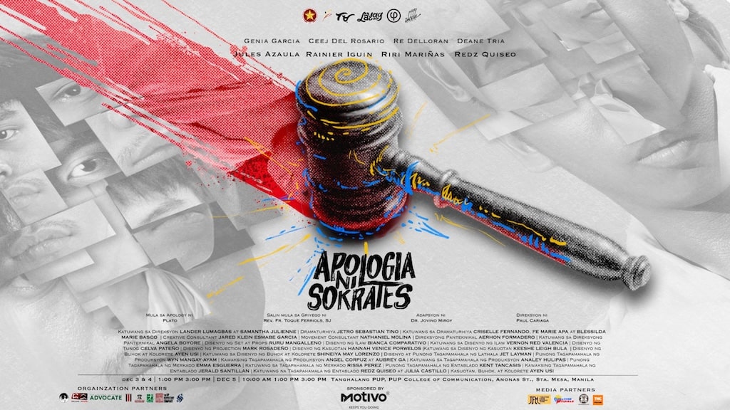 PUP Tanghalang Molave (PUP TM), the official theater organization of the Department of Performing Arts at the Polytechnic University of the Philippines (PUP), presents Apologia ni Sokrates, adapted from Plato’s Apology. Translated from Greek by Rev. Fr. Roque Ferriols, SJ, and adapted by Dr. Jovino Miroy, the production will be staged this December 2025 under the direction of Paul Cariaga, with Lander Lumagbas and Samantha Julienne as Assistant Directors.